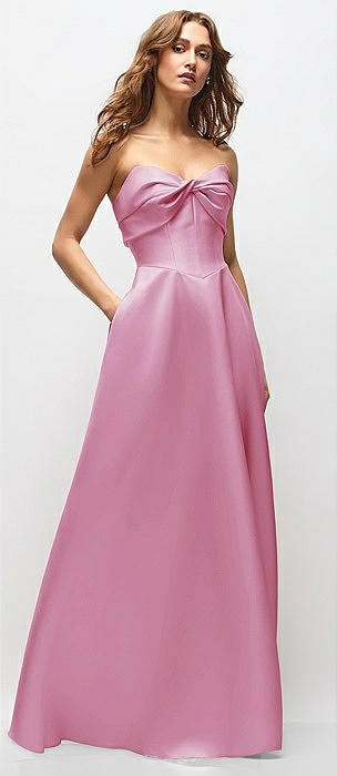 Strapless Cuff Satin Midi Dress with Column Skirt & Back Bow in powder pink