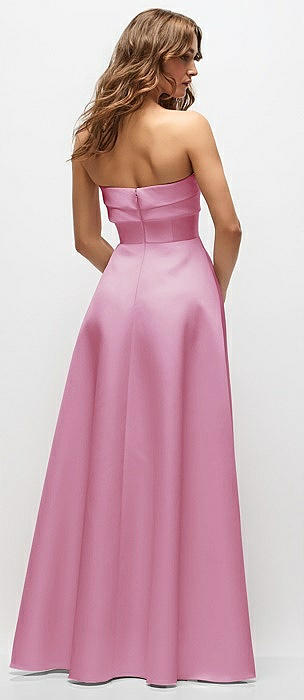 Strapless Twist Cuff Neck Satin Maxi Dress with Basque-Waist & Full Skirt in powder pink