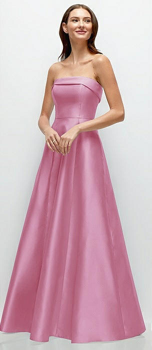 Strapless Satin Drop Waist Gown with Full Skirt in powder pink