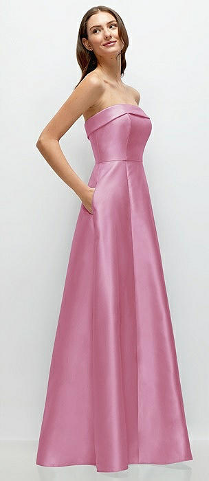 Strapless Bias Cuff Bodice Satin Gown with Pockets in powder pink