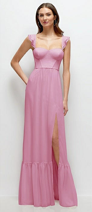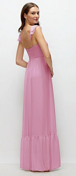 Ruffle Strap Chiffon Bustier Maxi Dress with Ruffle Hem A-Line Skirt in powder pink
