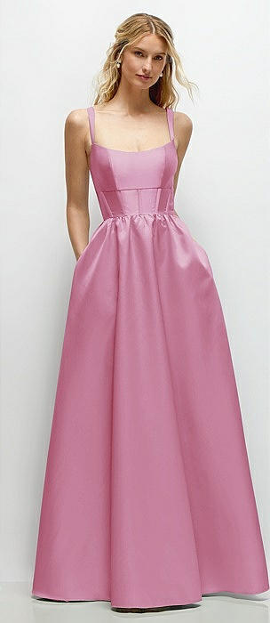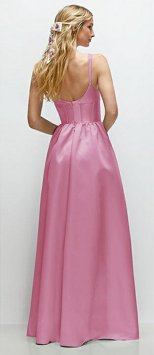 Scoop Neck Inset Corset Satin Maxi Dress with Pockets in powder pink