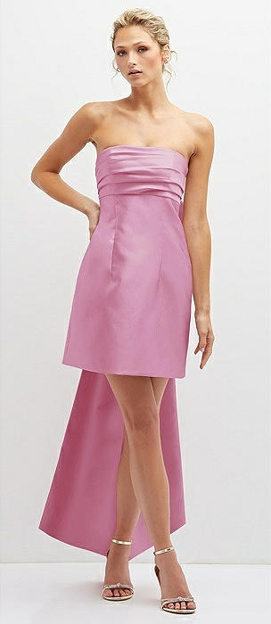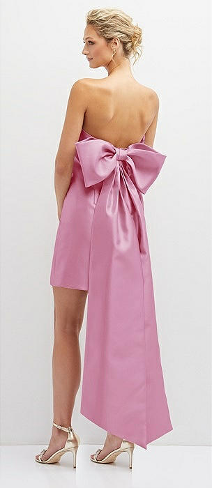 Strapless Satin Column Mini Dress with Oversized Bow in powder pink