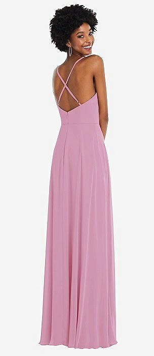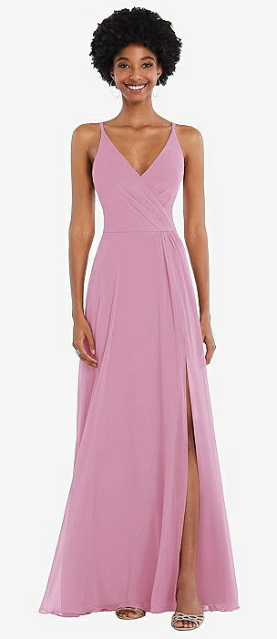 Faux Wrap Criss Cross Back Maxi Dress with Adjustable Straps in powder pink