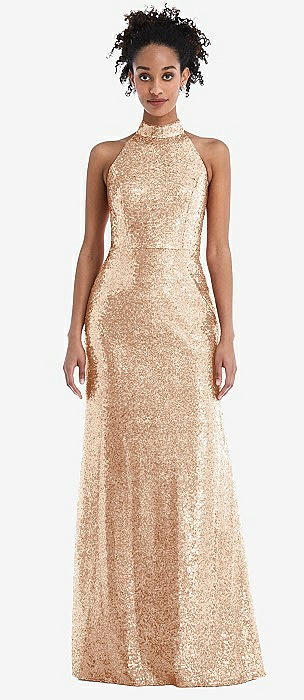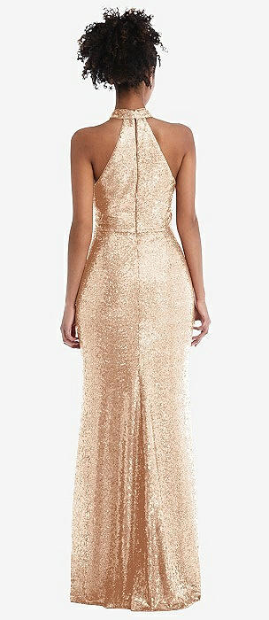 Stand Collar Halter Sequin Trumpet Gown