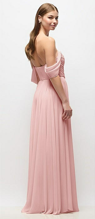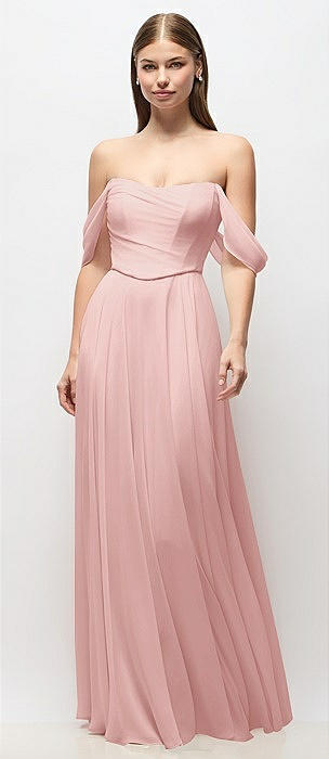 Off-the-Shoulder Basque Corset Chiffon Maxi Dress in rose