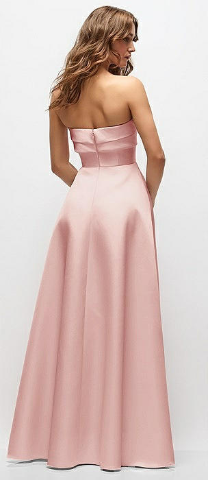 Strapless Satin Gown with Full Skirt and Covered Buttons at Back in rose