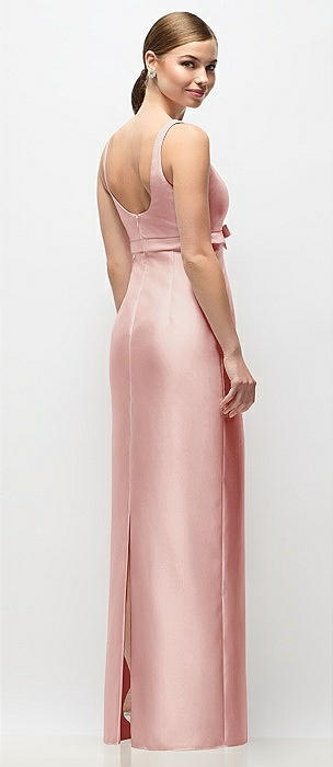 Scoop Neck Satin Column Maxi Dress with Bow at Empire Waist in rose