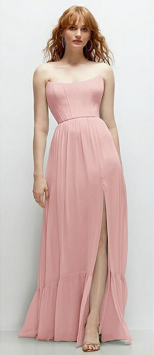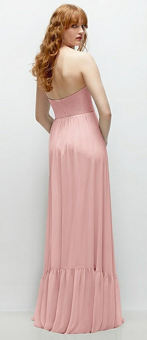 Strapless Cat-Eye Boned Bodice Maxi Dress with Ruffle Hem in rose