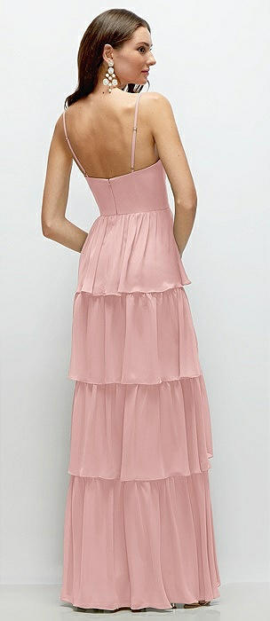 Bustier-Style Chiffon Tiered Ruffle Maxi Dress with Adjustable Straps in rose