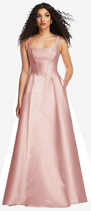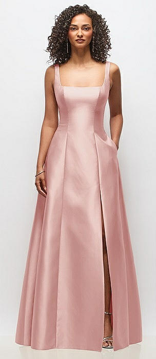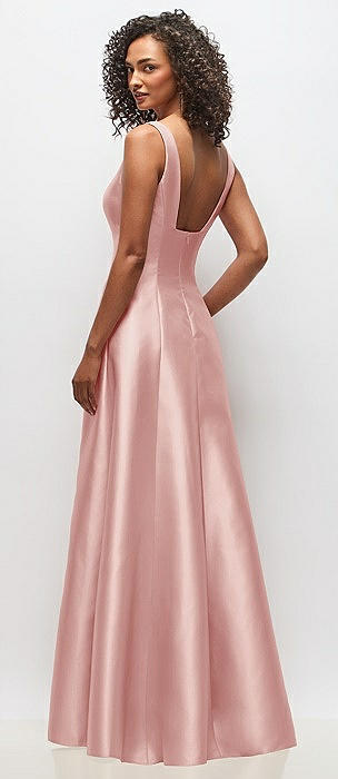 Sleeveless Square-Neck Princess Line Gown with Pockets in rose