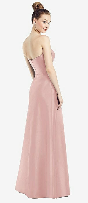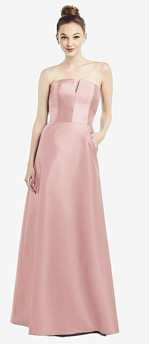 Strapless Notch Satin Gown with Pockets in rose