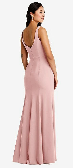 Off-the-Shoulder Bow-Back Satin Trumpet Gown in rose