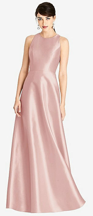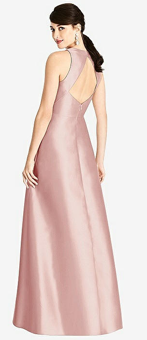Sleeveless Open-Back Satin A-Line Dress in rose