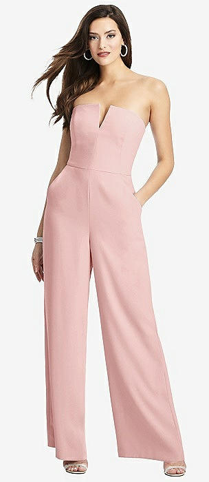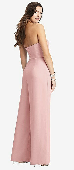 Strapless Notch Crepe Jumpsuit with Pockets in rose