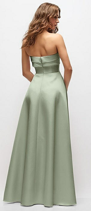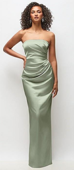 Strapless Draped Bodice Stretch Satin Column Maxi Dress in sage