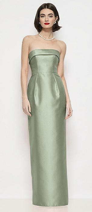 Strapless Pleated U-Wire Satin Column Maxi Dress in sage