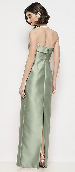 Strapless Cuff Neck Satin Maxi Dress with Column Skirt in sage