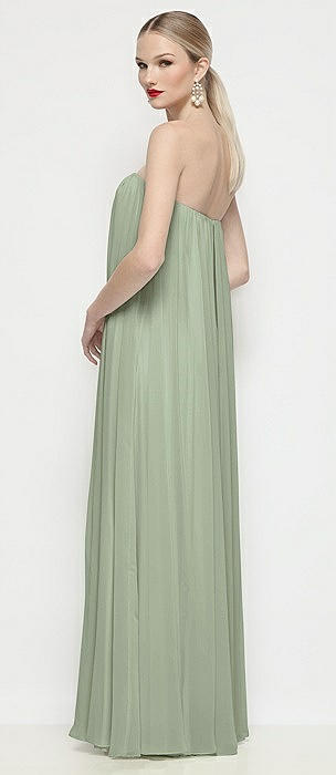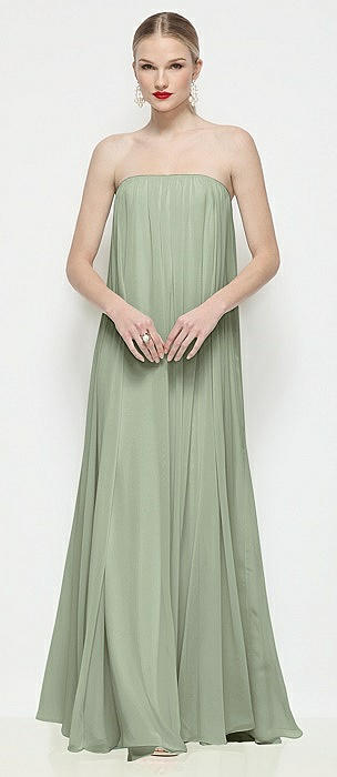 Strapless Shirred Chiffon Trapeze Maxi Dress in sage