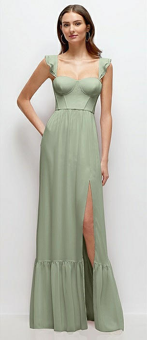 Ruffle Strap Chiffon Bustier Maxi Dress with Ruffle Hem A-Line Skirt in sage