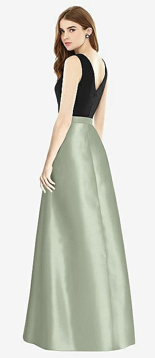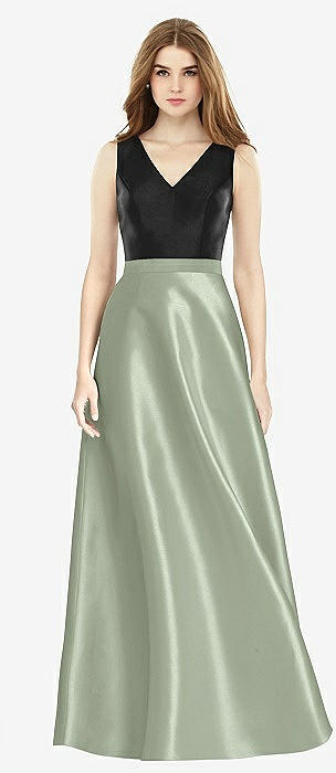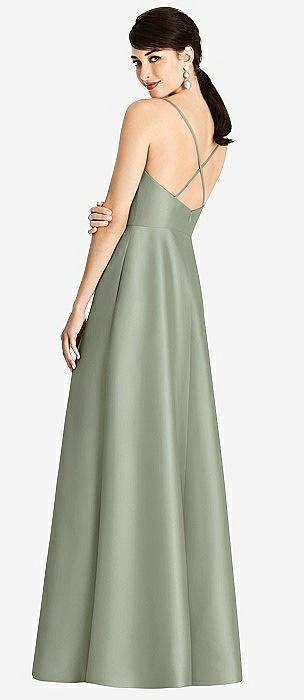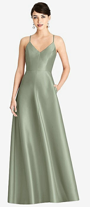 V-Neck Full Skirt Satin Maxi Dress in sage