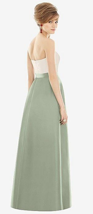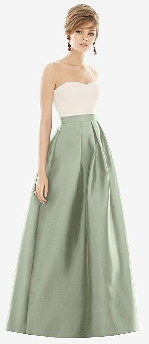 Strapless Pleated Skirt Maxi Dress with Pockets in sage