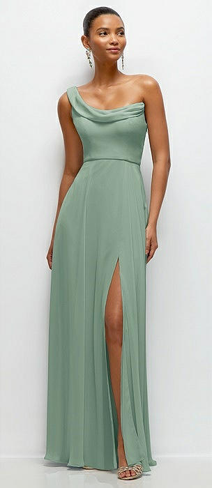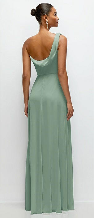 Chiffon One-Shoulder Maxi Dress with Draped Cowl Neckline in seagrass