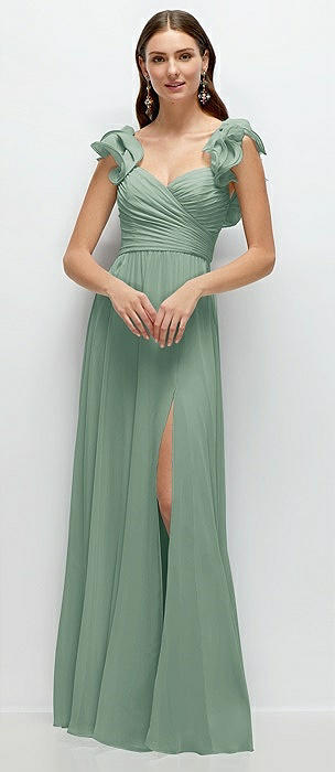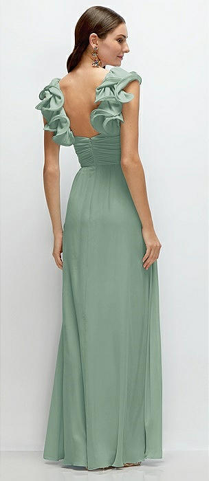 Dramatic Ruffle Edge Strap Chiffon Maxi Dress in seagrass