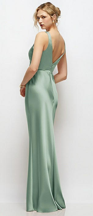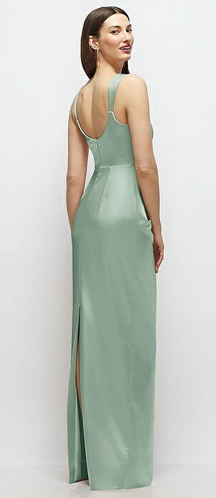 Scoop Neck Draped Column Stretch Satin Maxi Dress in seagrass