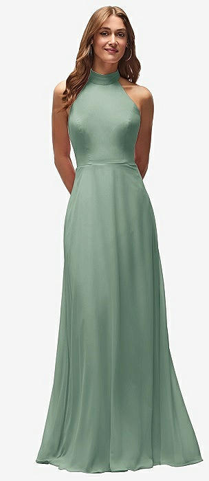High Neck Halter Backless Maxi Dress in seagrass
