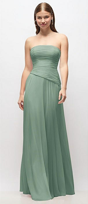 Strapless Chiffon Maxi Dress with Asymmetrical Ruched Drop Waist in seagrass
