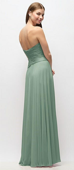 Strapless Pleated Surplice Chiffon Maxi Dress with A-Line Skirt in seagrass