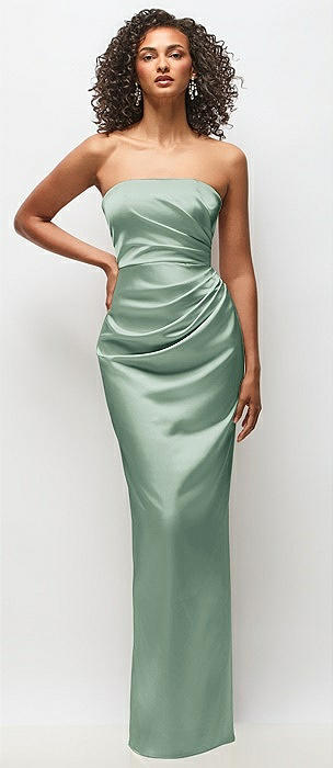 Strapless Draped Bodice Stretch Satin Column Maxi Dress in seagrass