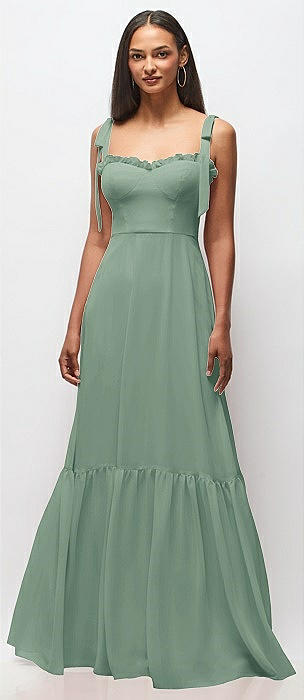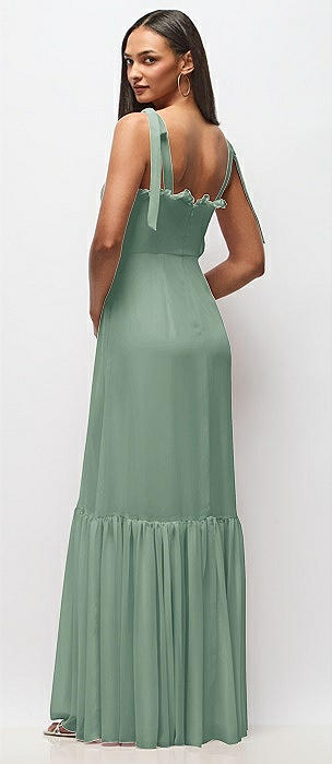 Dramatic Ruffle Edge Strap Chiffon Maxi Dress in seagrass