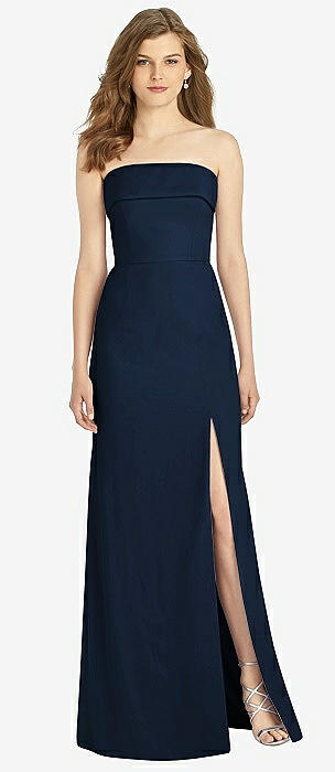Strapless Empire Waist Cutout Maxi Dress with Covered Button Detail in midnight navy