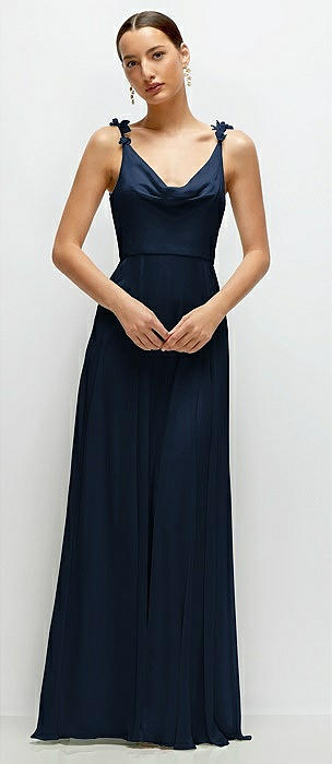 Cowl Neck Chiffon Maxi Dress with Hand-Worked Petal Straps in midnight navy