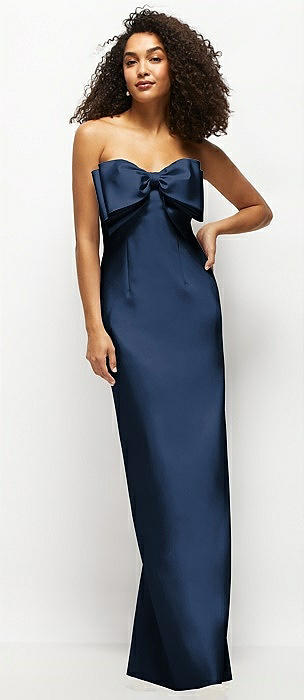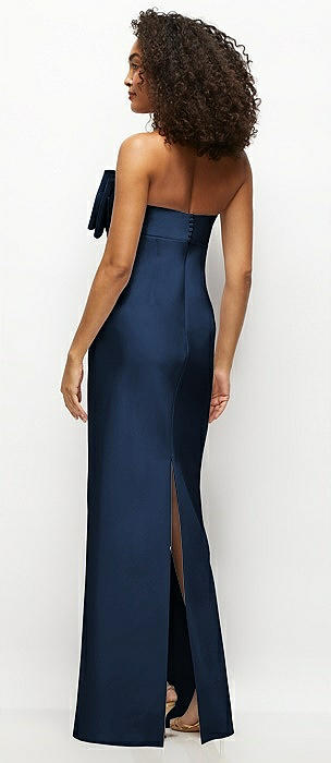 Strapless Satin Column Maxi Dress with Oversized Handcrafted Bow in midnight navy