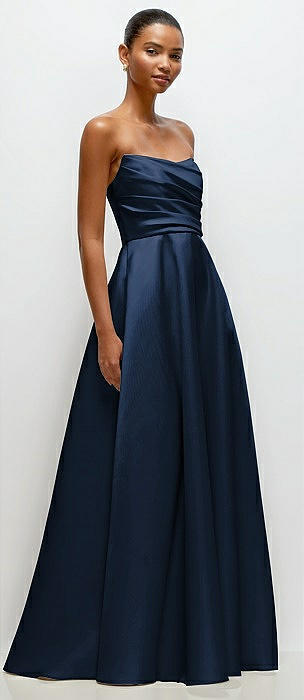 Strapless Satin Drop Waist Gown with Full Skirt in midnight navy
