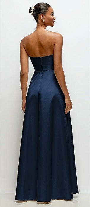 Strapless Satin Column Dress with Back Slit in midnight navy