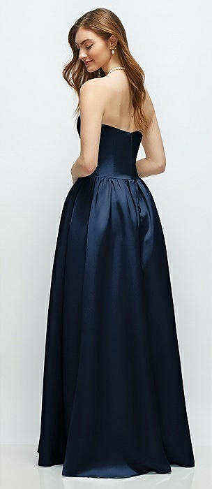 Strapless Satin Drop Waist Gown with Full Skirt in midnight navy