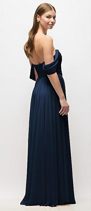 Strapless Chiffon Maxi Dress with Asymmetrical Ruched Drop Waist in midnight navy