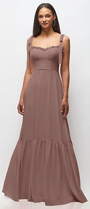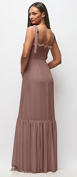 Ruffle Strap Chiffon Bustier Maxi Dress with Ruffle Hem A-Line Skirt in sienna