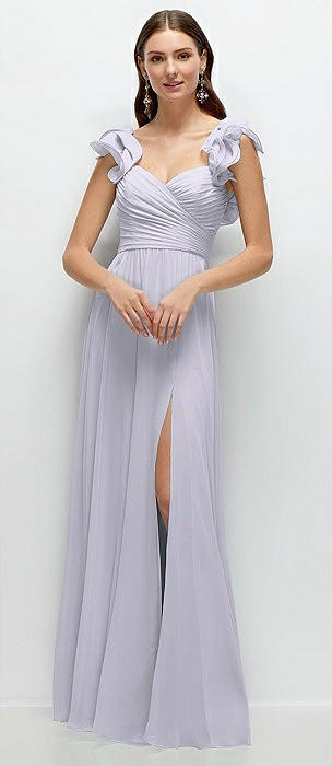 Convertible Ruffle Strap Chiffon Maxi Dress with Full Circle Skirt in silver dove