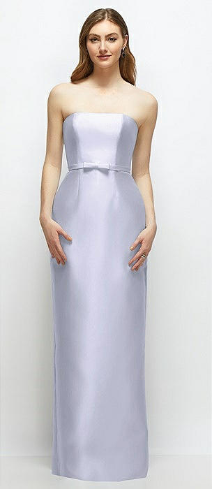 Strapless Cuff Satin Maxi Dress with Column Skirt & Back Bow in silver dove