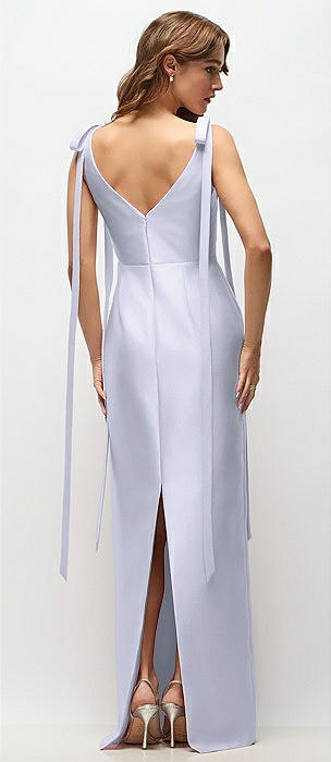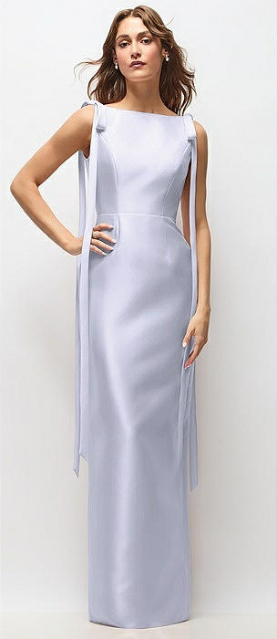 Bateau Neck Satin Column Maxi Dress with Exaggerated Tail Bow Straps in silver dove