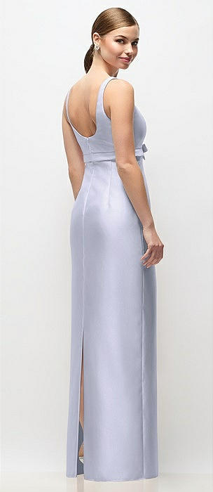 Scoop Neck Satin Column Maxi Dress with Bow at Empire Waist in silver dove