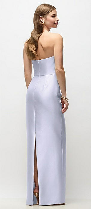 Strapless Cuff Satin Maxi Dress with Column Skirt & Back Bow in silver dove