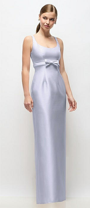 Scoop Neck Satin Column Maxi Dress with Bow at Empire Waist in silver dove