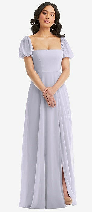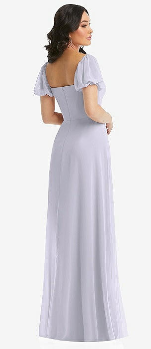 Bow Shoulder Square Neck Chiffon Maxi Dress in silver dove