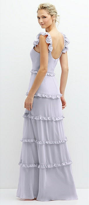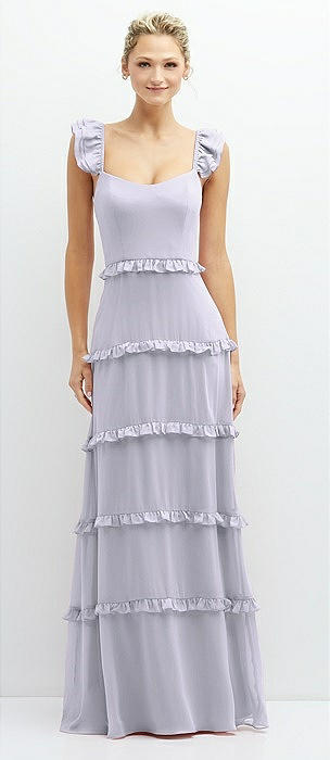 Tiered Chiffon Maxi A-line Dress with Convertible Ruffle Straps in silver dove